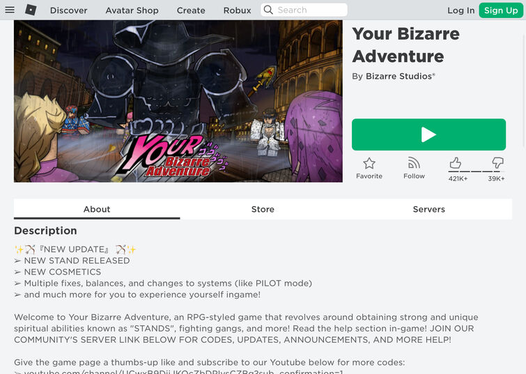 3 from Apr 26, 2021 · our roblox your bizarre adventure codes is the most latest active codes list of op working codes, that you can redeem for multiple free parts in the game. The codes in this game expire almost quickly, so you won't always obtain anything free. The game tasks you with learning unique spiritual abilities known as 'stands' to fight against tough gangs. Please, read our community guidelines before you edit. To ensure active codes work, type them in, in the exact same capitalization as shown in the list below. Players can obtain spiritual abilities, battle their way through the world, fight rival gangs, and explore new areas. Redeeming codes in your bizarre adventure will help you get useful items, and exp boosts for progress. There is a new code system, so get ready, because there are going to be more codes soon.